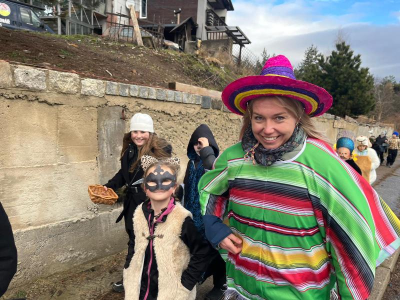 Konečně povolily mrazy, prodloužily se dny a začali zpívat ptáci. A i když pesimisté tvrdí, že zima se jen tak nevzdá, jaro se zdá být na dohled. A tak jsme, ještě než nám Popeleční středa zatrhne radovánky, uspořádali Masopust. V tradičním průvodu masek skotačil Střapák, kymácel se medvěd, belhala bába, zamňoukaly kočky a bouřili piráti. Nevěsta byla krásná a ženich švarný, nebo to bylo obráceně? Princezny vznešeně kráčely vedle hořčice s kečupem, nechyběl Číňan ani voják a kominík nám přinesl štěstíčko. Pohřbili jsme basu a jako při každé pořádné veselici skončili u plného stolu- tentokrát plného vdolečků! Děkujeme těm, které chyběly v průvodu, aby je pro nás ukuchtily!