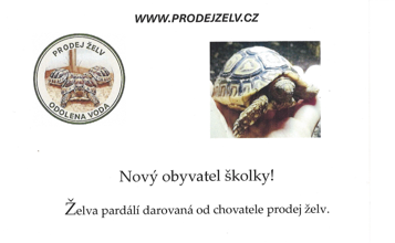 Do naší mateřské školy dorazil nový kamarád – mládě želvy pardálí, které nám daroval chovatel z Odoleny Vody.