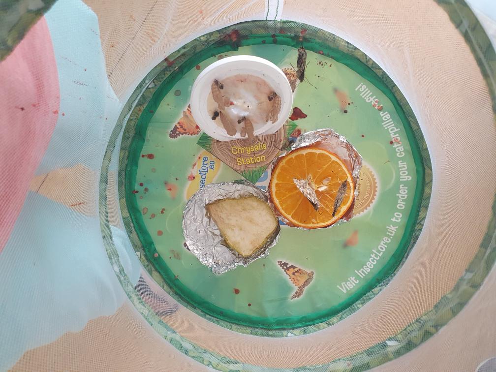 Je to asi 10 dní, co se k nám do školy i školky nastěhovaly housenky Babočky admirála. V první fázi se jen pozoruje průhledná miska s housenkami, ve které je dostatek krmení až do fáze zakuklení. Pak se kukly opatrně přesunou do chovné síťky a tam se vyčká na vylíhnutí motýlků.